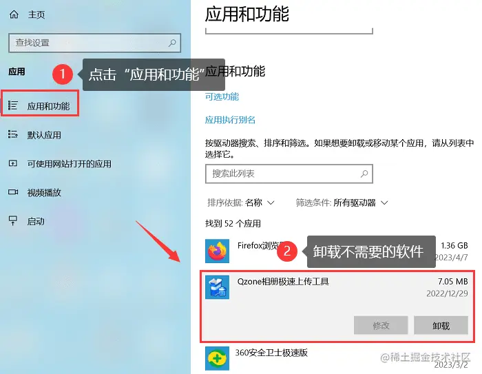 - 在控制面板的【应用和功能】中查找不再使用的程序;