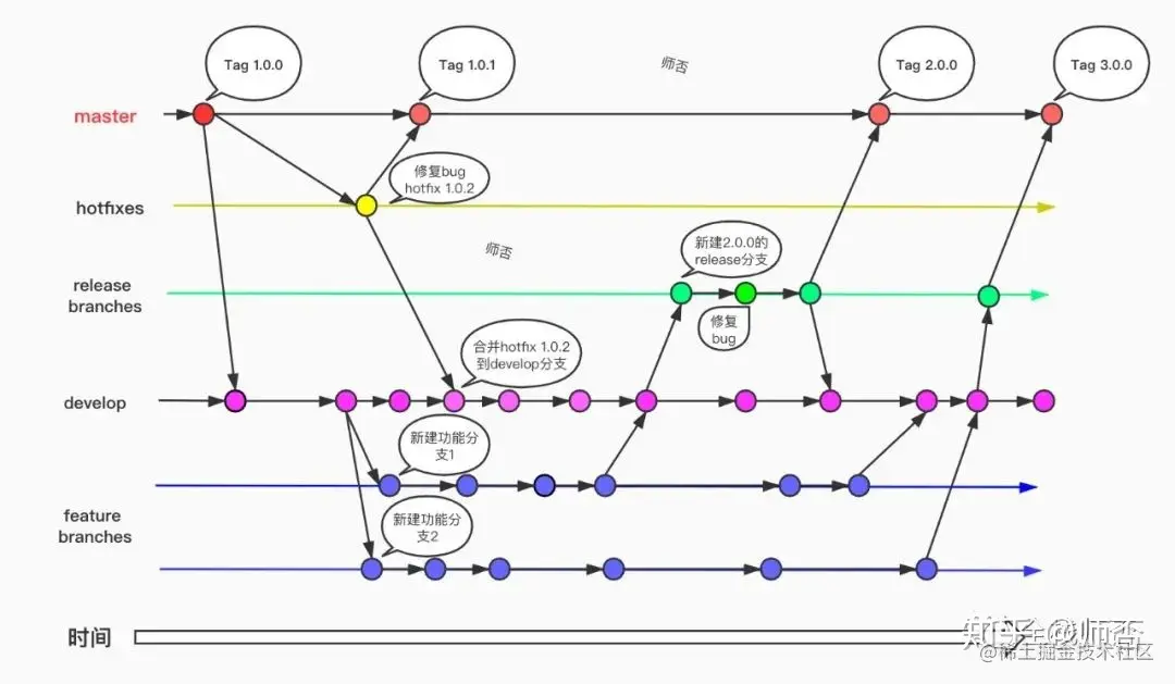 补丁分支(hotfix): 当我们在生产环境发现新的Bug时候,我们需要基于master分支创建一个Hotfix分支,然后在Hotfix分支上修复bug,完成Hotfix后,我们要把hotfix分支合并回Master和Develop分支