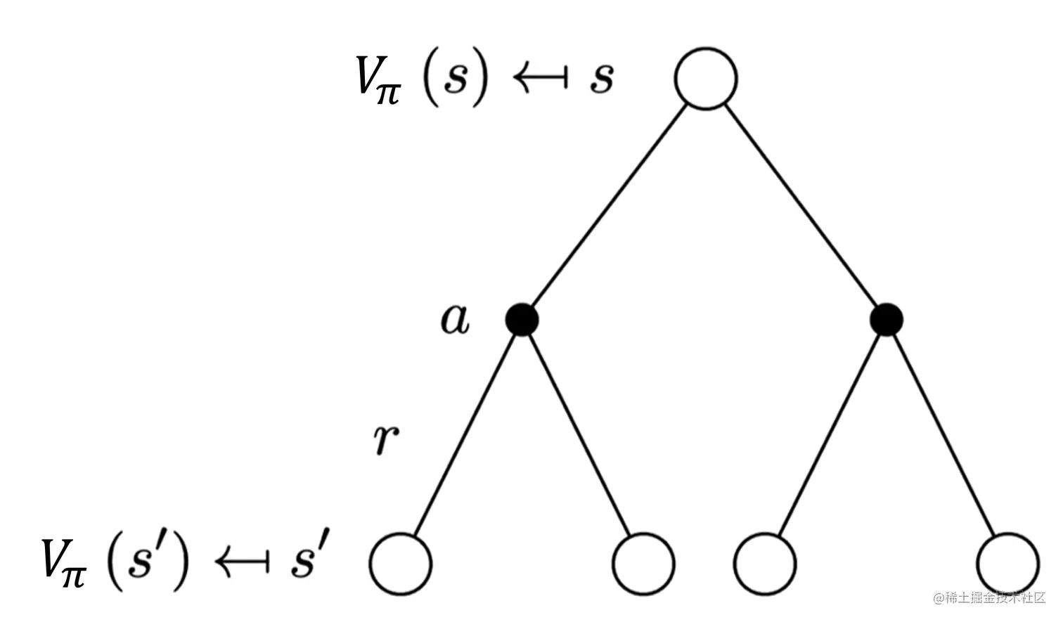 但是这里我们采取了另外一种计算方法,从价值函数里面推导出贝尔曼方程(Bellman equation) :