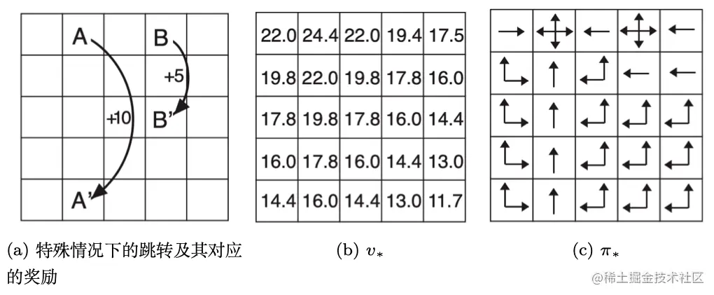 通过上面的例子,我们知道策略迭代可以把网格世界“解决掉”。“解决掉”是指,不管在哪个状态,我们都可以利用状态对应的最佳的策略到达可以获得最多奖励的状态。