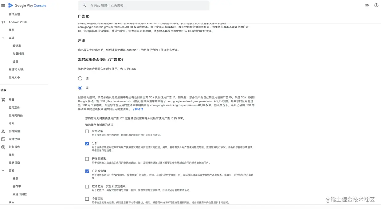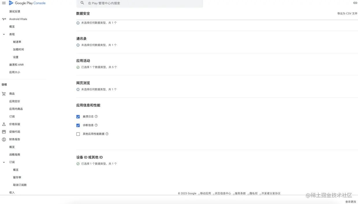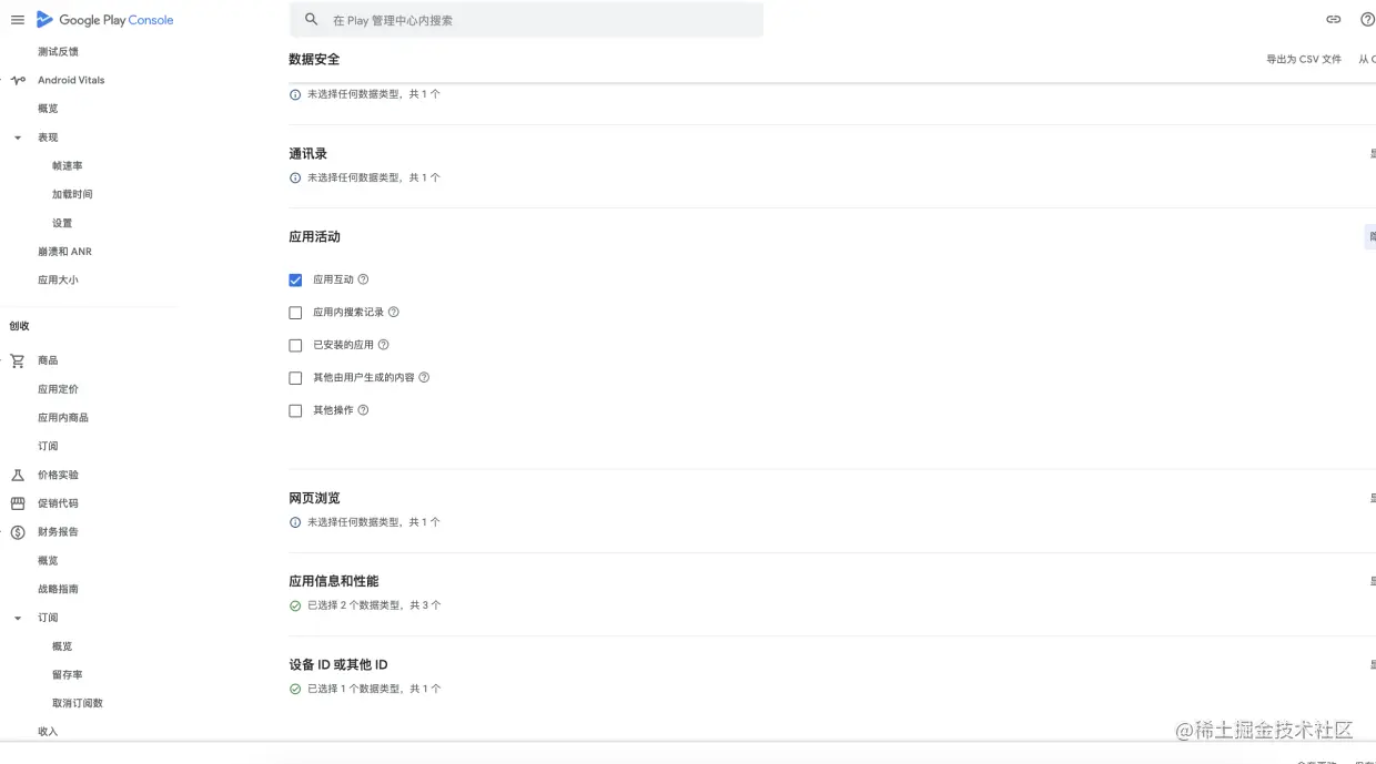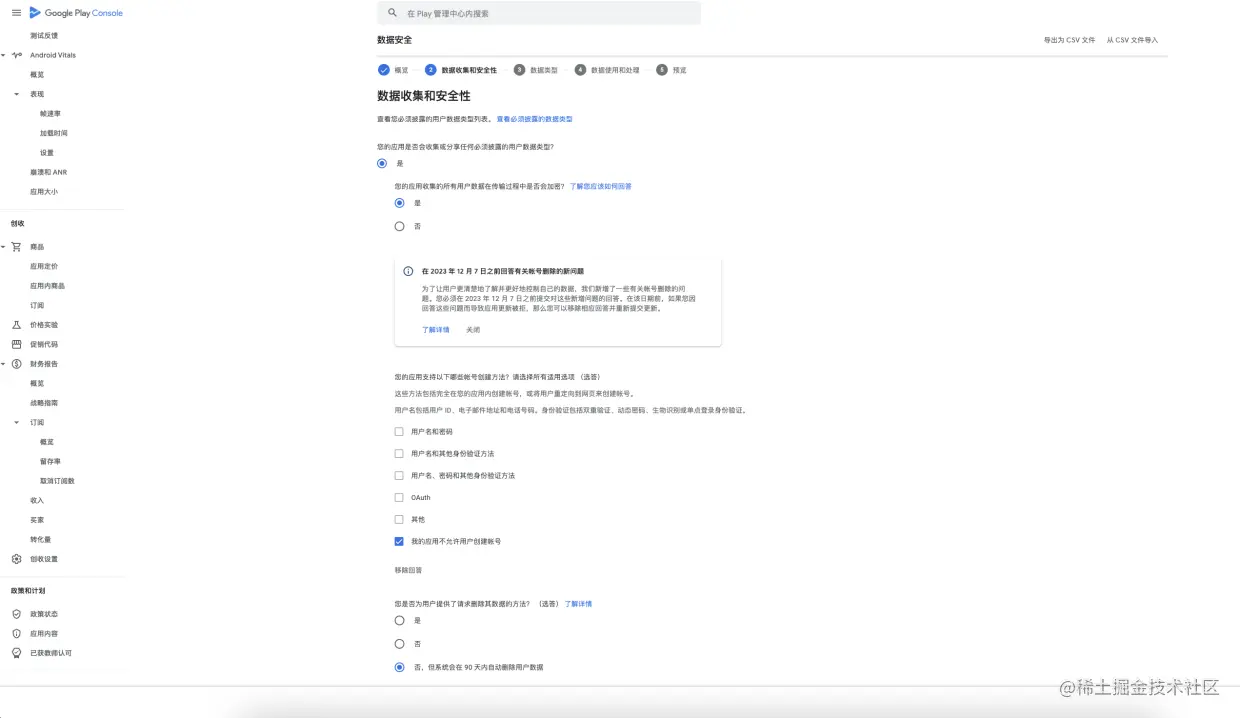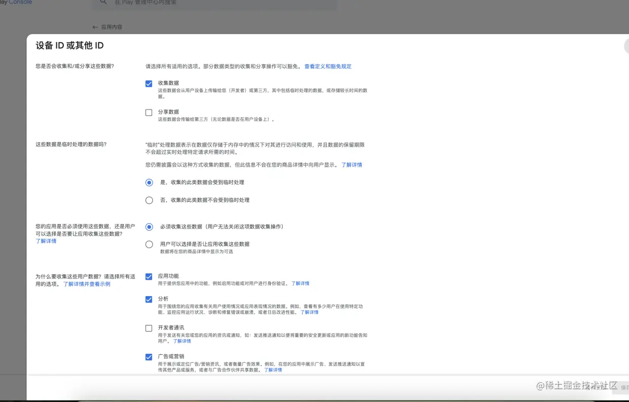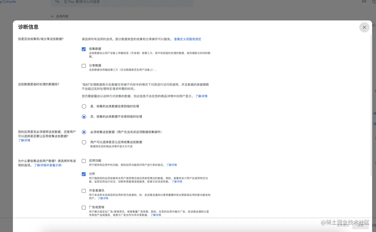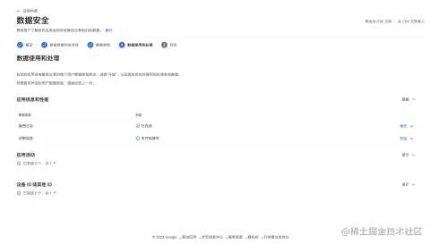 数据安全 按实际情况勾选对应的数据收集,后面还需要对收集数据做出解释