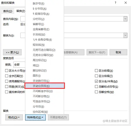 如果您的文档中,不止有一个空白页,您可以使用下面这个方法,删除多个空白页。通过使用Word快捷键【Ctrl+H】,打开【查找和替换】窗口。单击【特殊格式】,选择【手动分页符】,通过点击【全部替换】,删除所有的空白页。