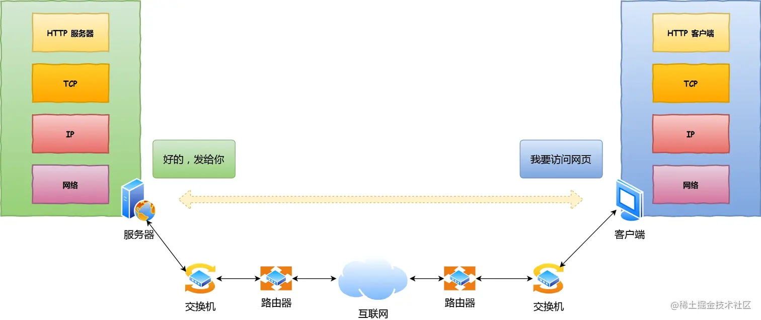 HTTP 请求的数据流转过程非常复杂,涉及多个协议层次和网络设备。通过数据流转示意图可以简要了解该流程: