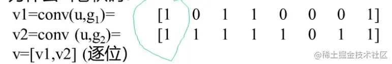 描述编码器的一种方法是指定n个连接矢量,每个矢量对应于一个模2加法器。每个矢量都是L维的,表示该模2加法器和编码移位寄存器之间的连接。矢量中第i位上的1表示移位寄存器相应级与模2加法器连接,若是0,则表示相应级与模2加法器之间无连接。