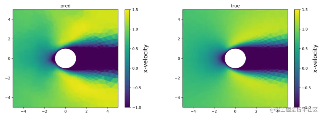 图4.1 雷诺数=78的圆柱速度场的预测值与真实值对比图
