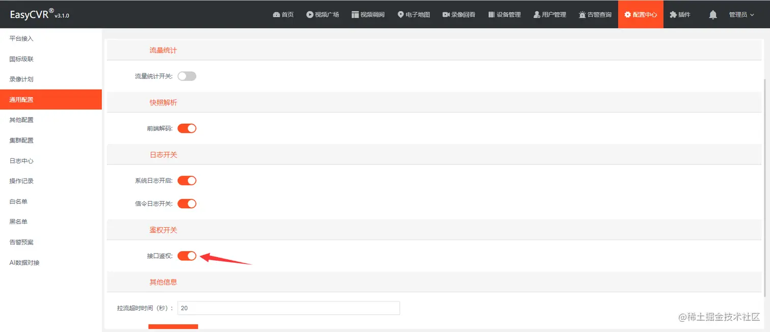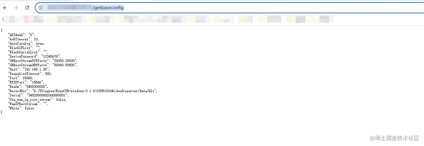 有用户反馈,现场部署了EasyCVR 3.1版本,开启接口鉴权后,调用接口/api/v1/getbaseconfig,仍能获取到数据,如下图: