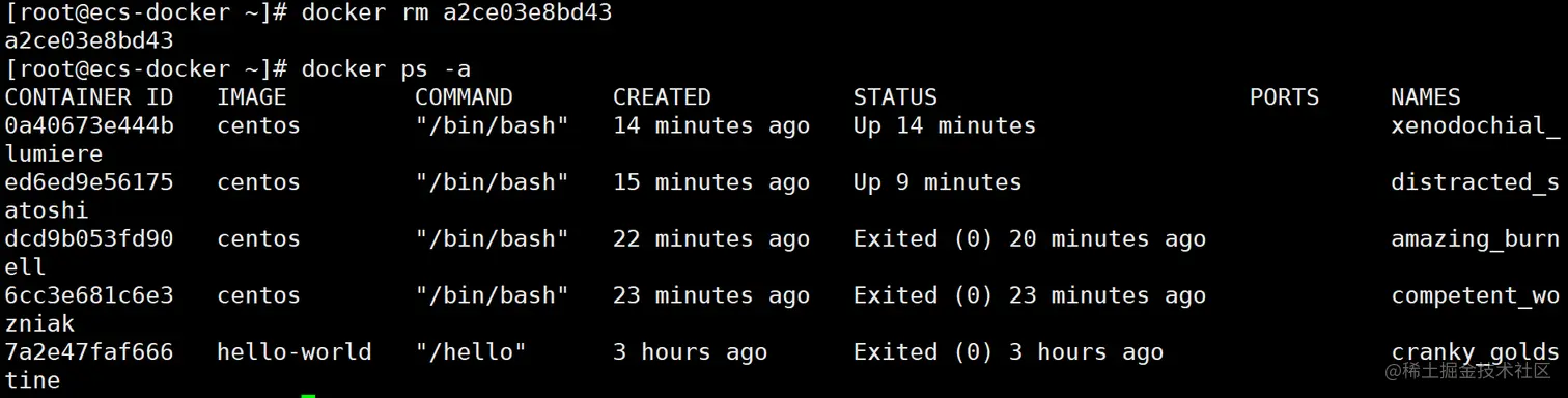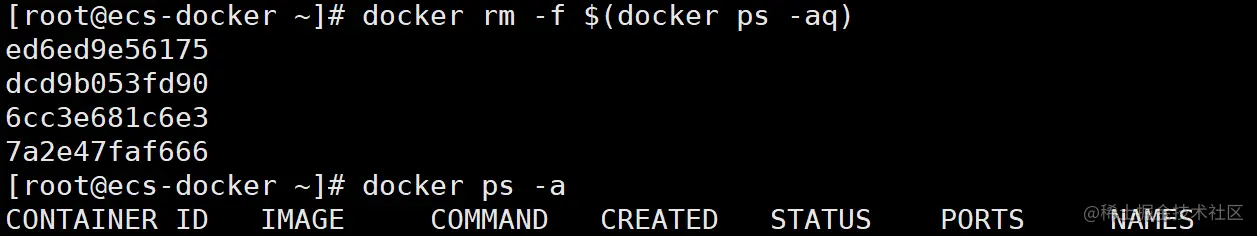 还可以通过docker rm -f $(docker ps -aq)来删除所有容器: