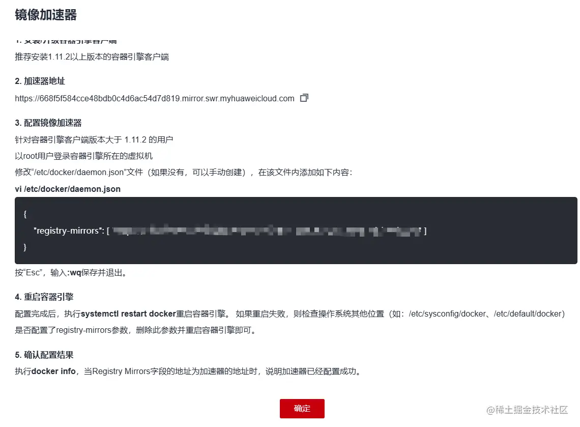 注:如果华为云镜像加速器不好用,可以换用阿里云