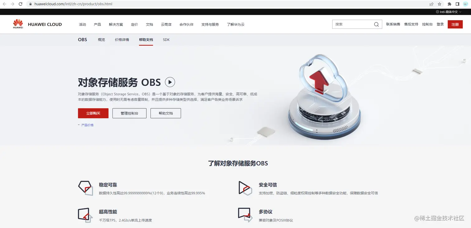 华为云OBS的链接:www.huaweicloud.com/intl/zh-cn/…