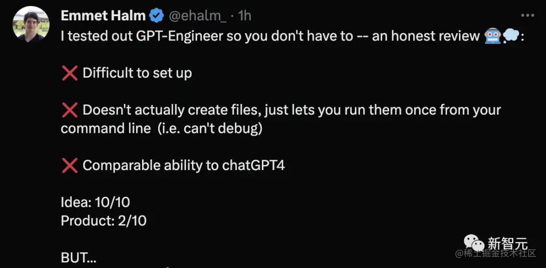 网友表示,「澄清问题」是真正使GPT-Engineer脱颖而出的原因,因为修复生成代码中的问题往往比编写代码本身需要更多的时间。这似乎是朝着正确方向迈出的一大步。