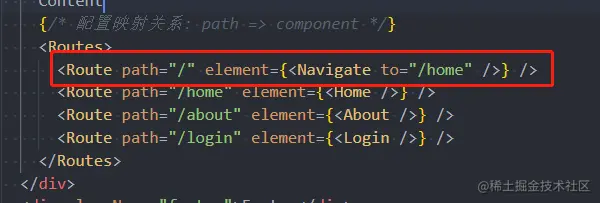 {/* Navigate 一旦这个东西出现 就会自动跳转到 Navigate里面的to页面 */}