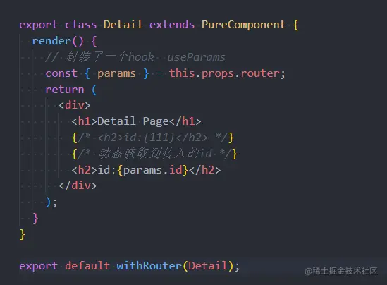 - 如果我们将path在Route匹配时写成/detail/:id,那么 /detail/abc、/detail/123都可以匹配到该Route,并且进行显示