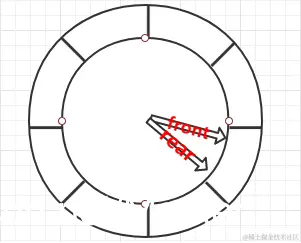 说明:在顺序队中,通常让队尾指针rear 指向刚进队的元素位置,让队首指针ront 指向刚出队的元素位置。因此,元素进队的时候,rear要向后移动;元素出队的时候,front也要向后移动。这样经过一系列的出队和进队操作以后,两个指针最终会达到数组末端maxSize-1处。虽然队中已经没有元素,但仍然无法让元素进队,这就是所谓的“假溢出”。要解决这个问题,可以把数组弄成一环,让rear和front沿着环走,这样就永远不会出现两者来到数组尽头无法继续往下走的情况,这样就产生了循环队列。循环队列是改进的顺序队列。下面是循环队列的两个特殊状态和两个操作