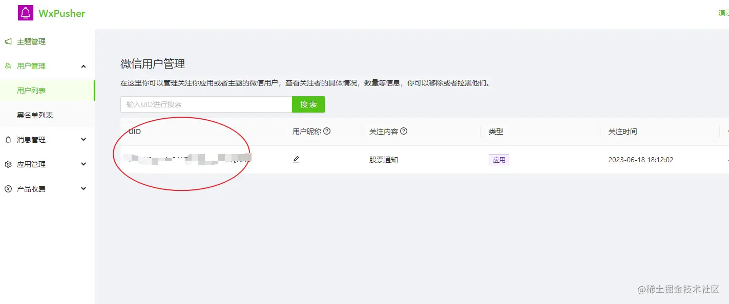 点击用户管理,用户列表,可以看到自己的uid,复制保存;