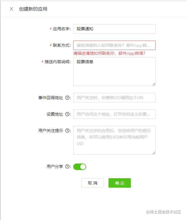 应用创建成功后,会得到一个apptoken