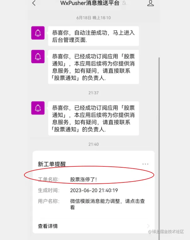 程序运行后,可以在微信上看到推送: