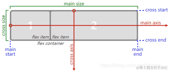 (1)开启了 flex 布局的元素叫 flex container,flex container 里面的直接子元素叫做 flex items。