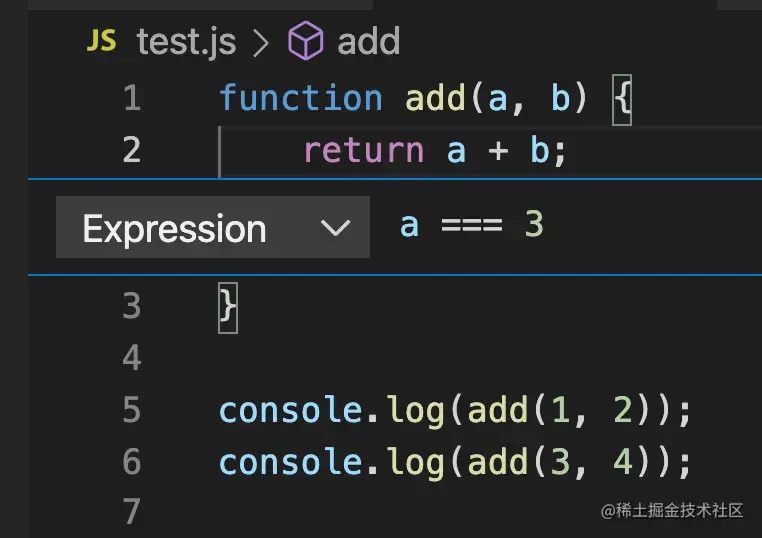 添加一个表达式,比如我只想在 a 等于 3 的时候断住: