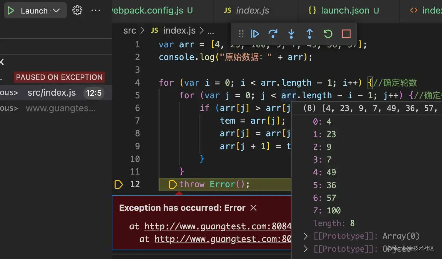 可以看到调用栈来理清出错前都走了哪些代码,可以通过作用域来看到每一个变量的值。