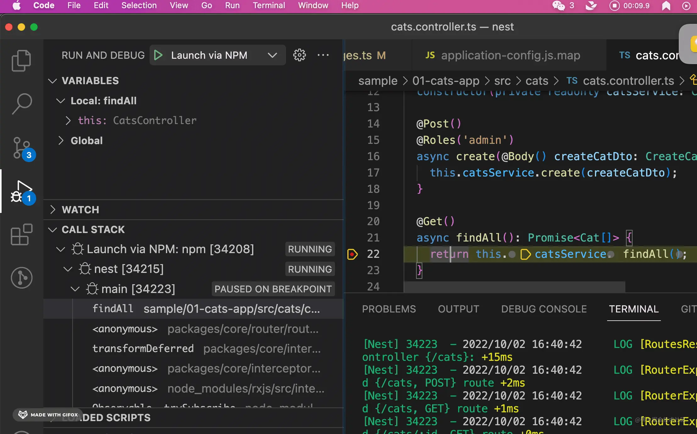 跑一下 node 调试,你会发现打印了日志,但没有断住: