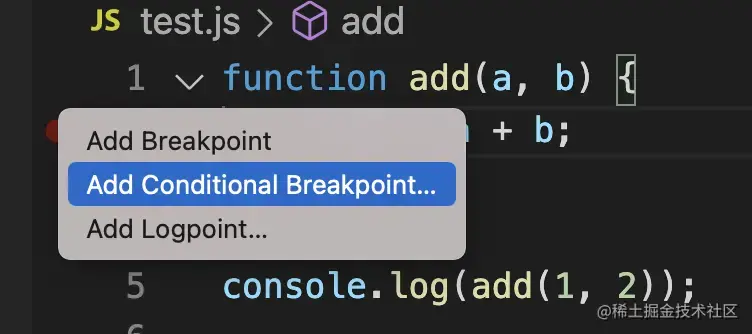 在代码左边打断点的地方右键单击,就可以选择条件断点: