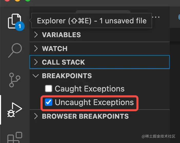勾选异常断点选项