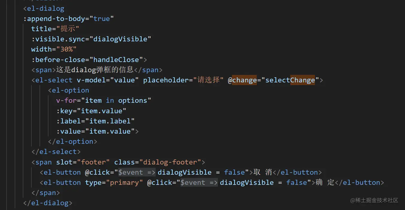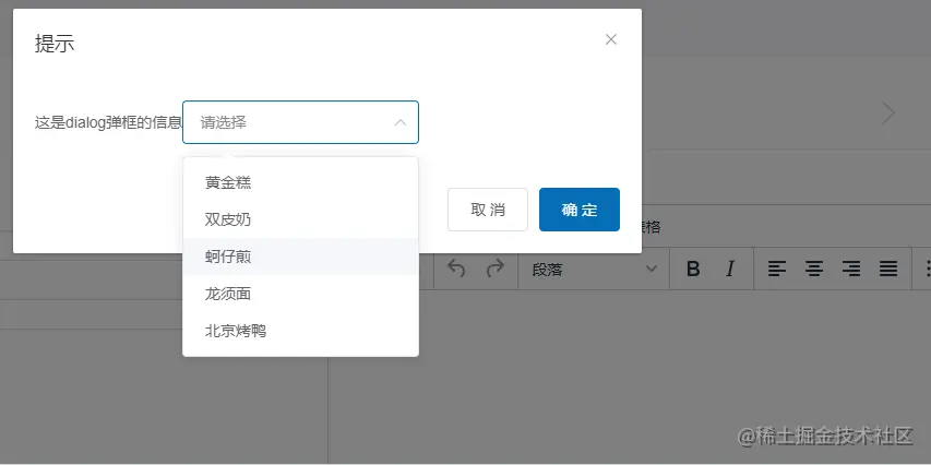 如果要添加其他的功能,例如在弹框中添加一个选择框或者表单 ,处理的话就是正常的处理,正常使用elementUI的方法和属性。