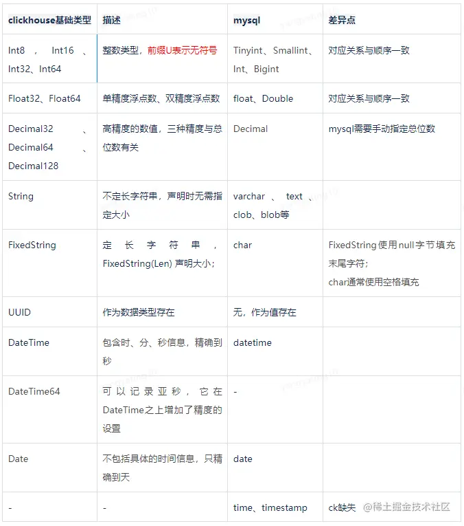 - 数据同步成本:clickhouse可以做到与mysql的表结构一致,进而数据同步成本较低,不需要调整数据结构、不需要额外做宽表处理(当然转为宽表效率更高)。
