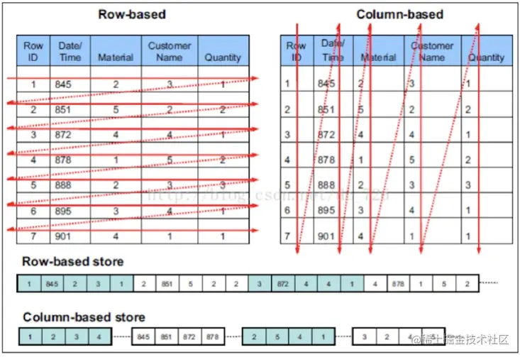 - 列存储:仅从存储系统中读取必要的列数据(select + where 涉及到的),无用列不读取,速度非常快。
