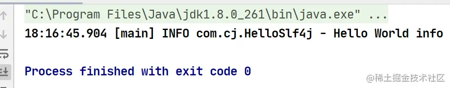 18:19:43.521 [main] INFO com.cj.HelloSlf4j - Hello World info