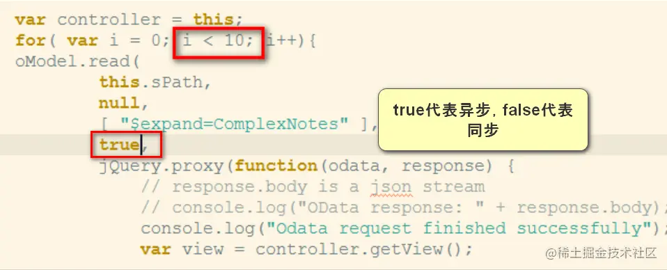 为了验证这个猜测是否正确,我写了一段简单的测试代码:在一个for循环里使用SAP UI5 OData Model read API,发出10个OData请求: