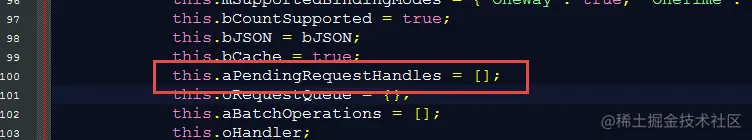 在SAP UI5的OData框架的ODataModel.js中,维护了一个HTTP请求的pending列表,其内维护了已经发送,但是还没有收到响应的request对象: