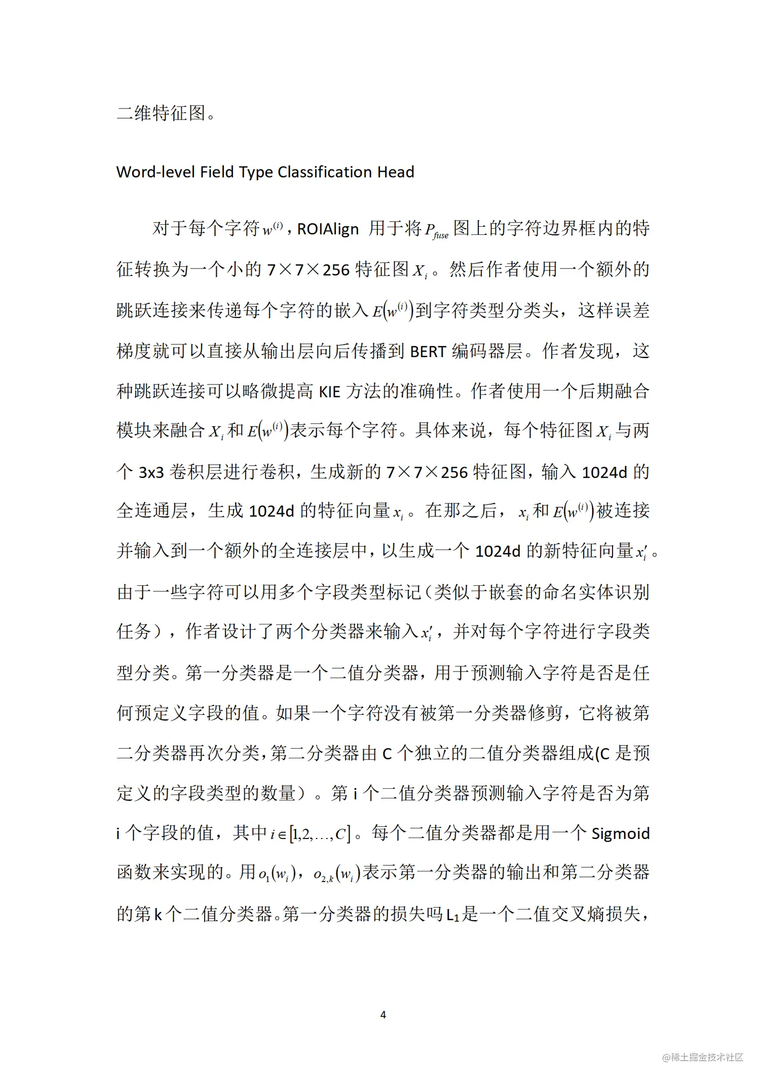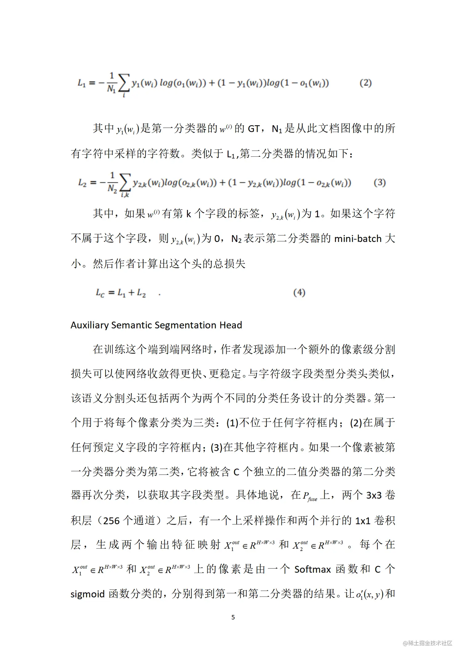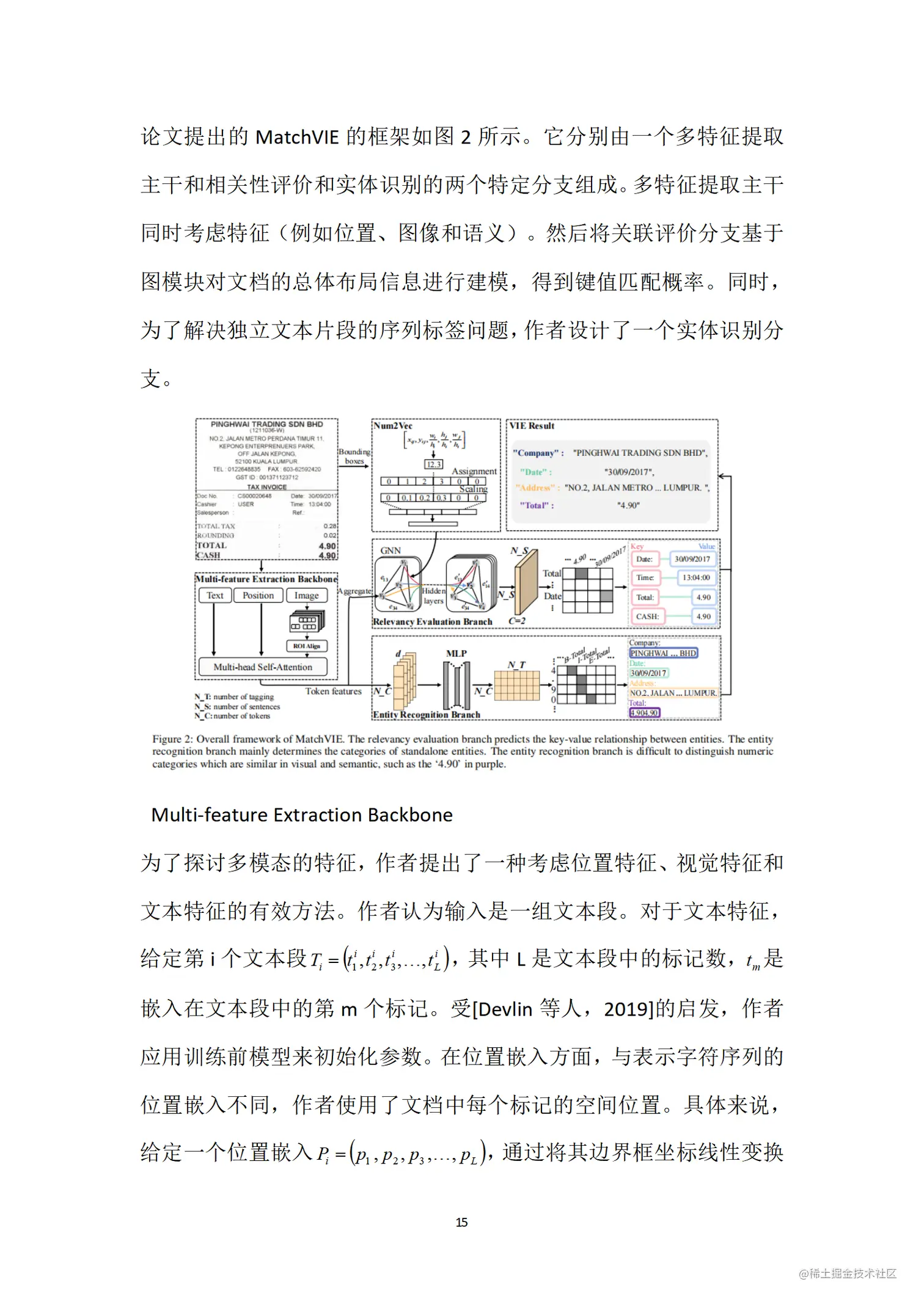 还有一些研究人员认为,文档的图像特征非常有用,因为图像特征是字体、字形、颜色等的混合表示。由于信息抽取任务涉及文档图像,一些研究人员将其视为一项纯粹的计算机视觉任务。这些方法从光学字符识别(OCR)的角度解决了信息抽取任务。对于每一种类型的实体,这些方法设计了相应的解码器,负责识别文本内容并确定其类别。由于缺乏语义特征,这种方法在面对复杂的布局时不能很好地工作。