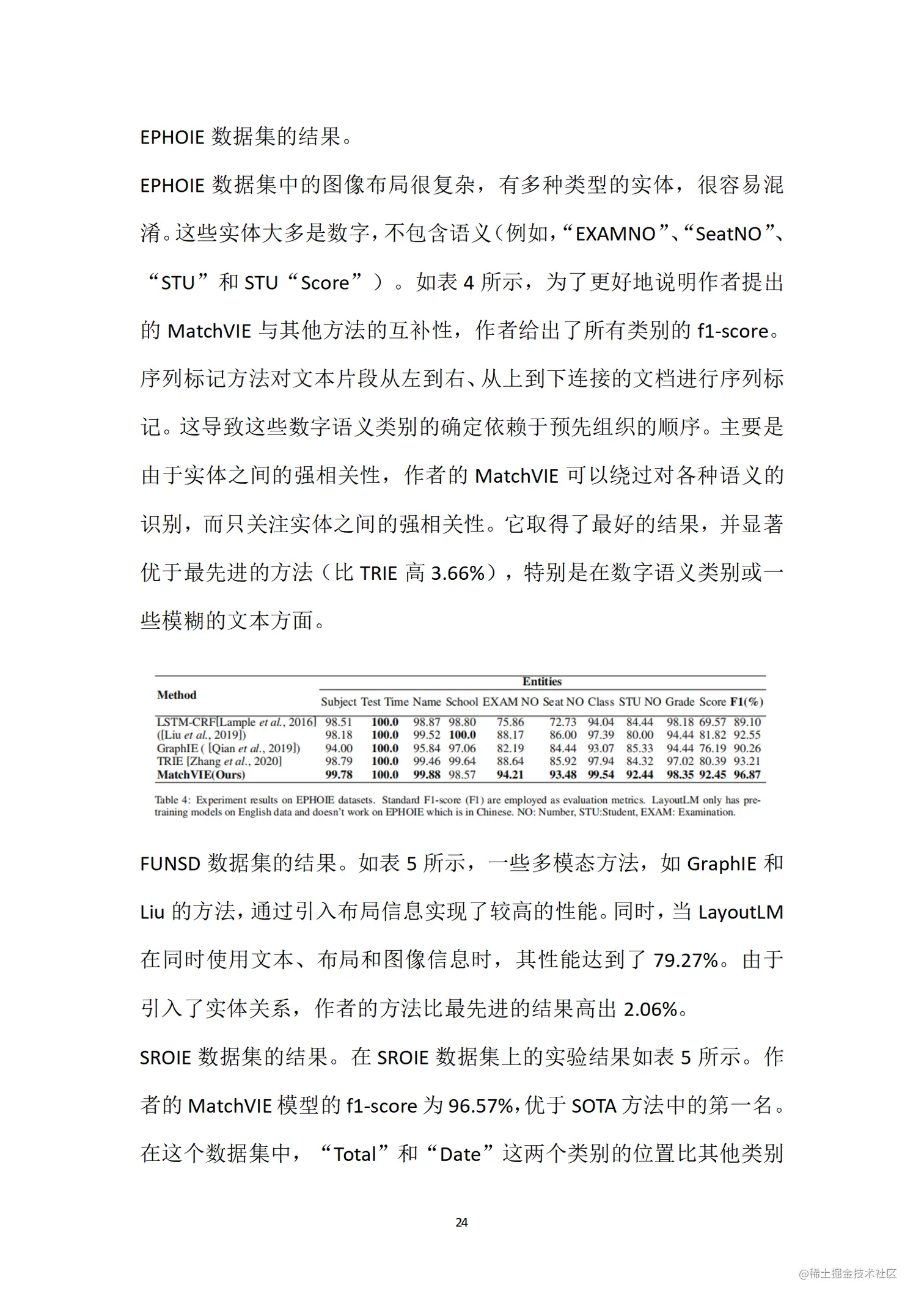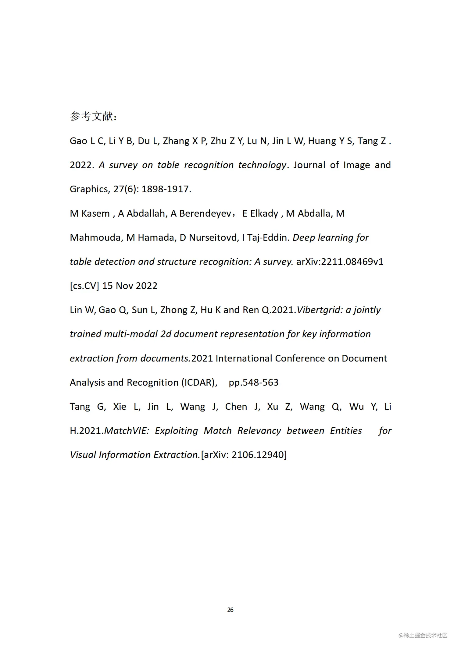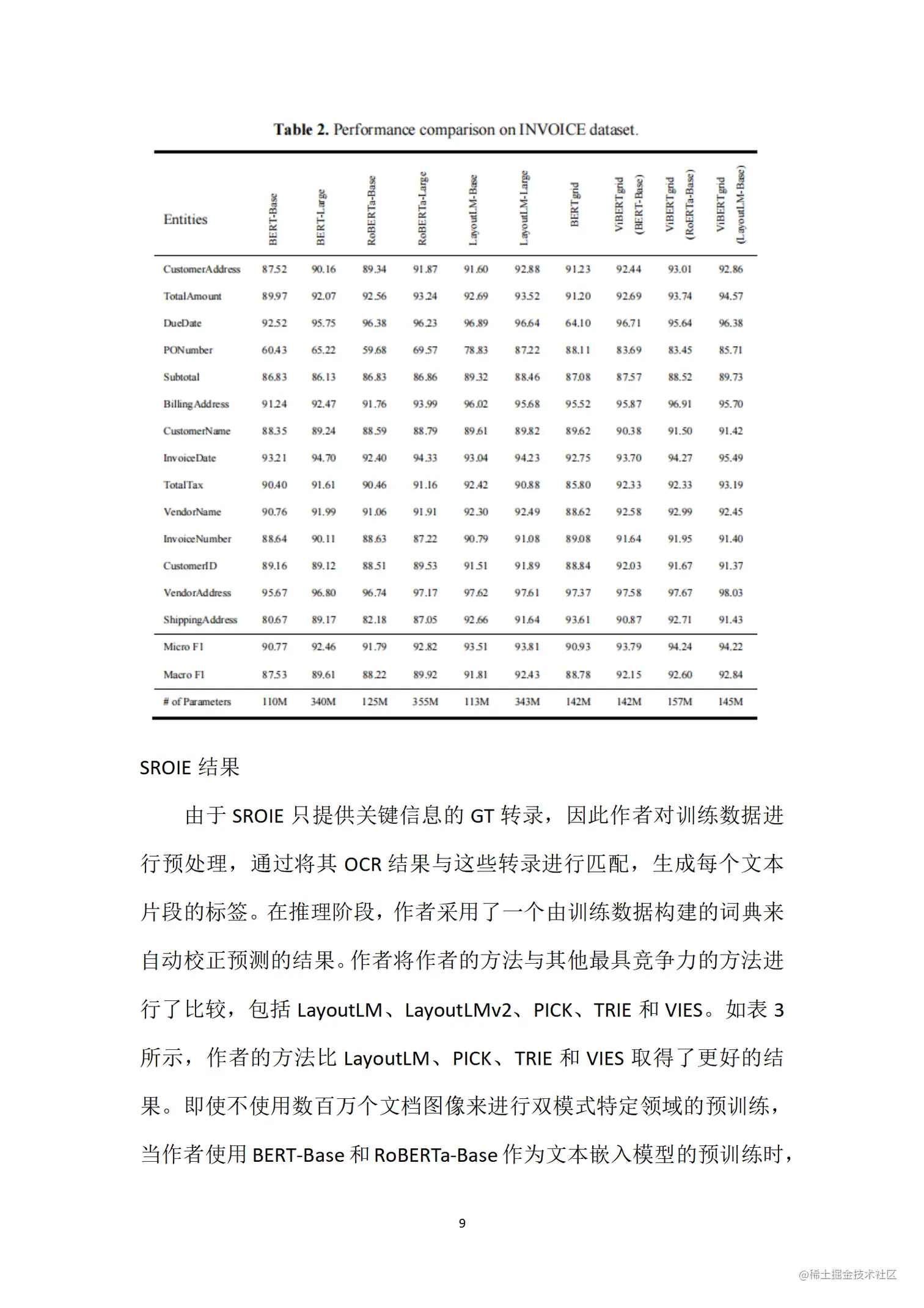 表格信息抽取方面,国外的研究者在基于序列的方法上比较突出,提出了LAMBERT,TILT等一批优秀的模型,这与国外长期积累的语言模型发展经验有关,在基于二维特征网格的方法上国外也有较早的探索,提出了Chargrid和BERTgrid等经典模型,而对于基于图的方法研究较少;而国内的研究者在基于图和基于二维特征网格的方法上有着世界领先的水平,PICK,MatchVIE和ViBERTGrid等方法在各种信息抽取任务上名列前茅。总的来说,近年来国内外研究者对表格内容识别都非常关注,这一领域的方法也呈现出多元化发展的态势。
