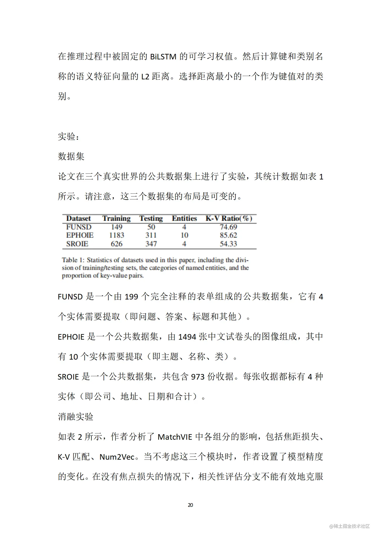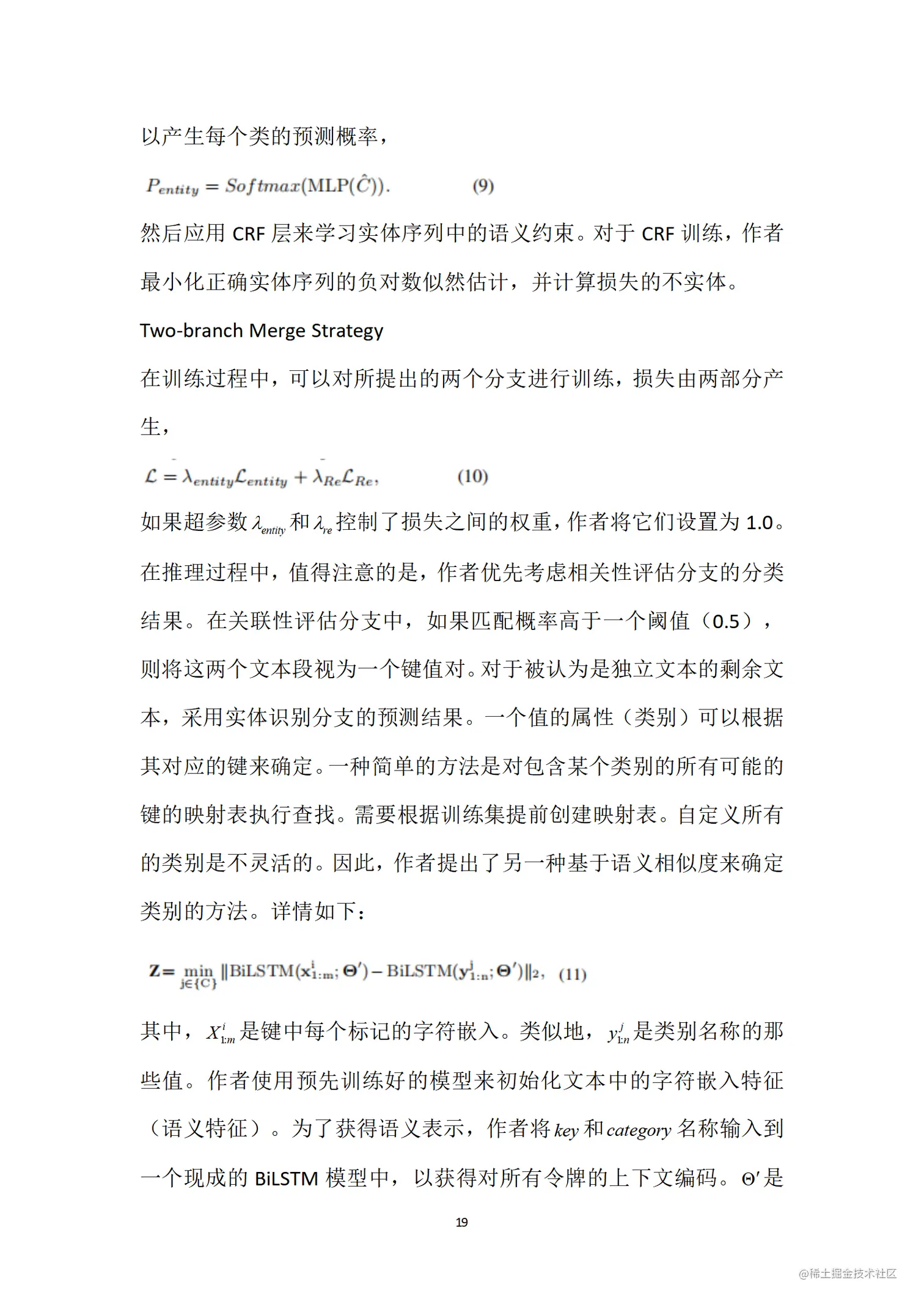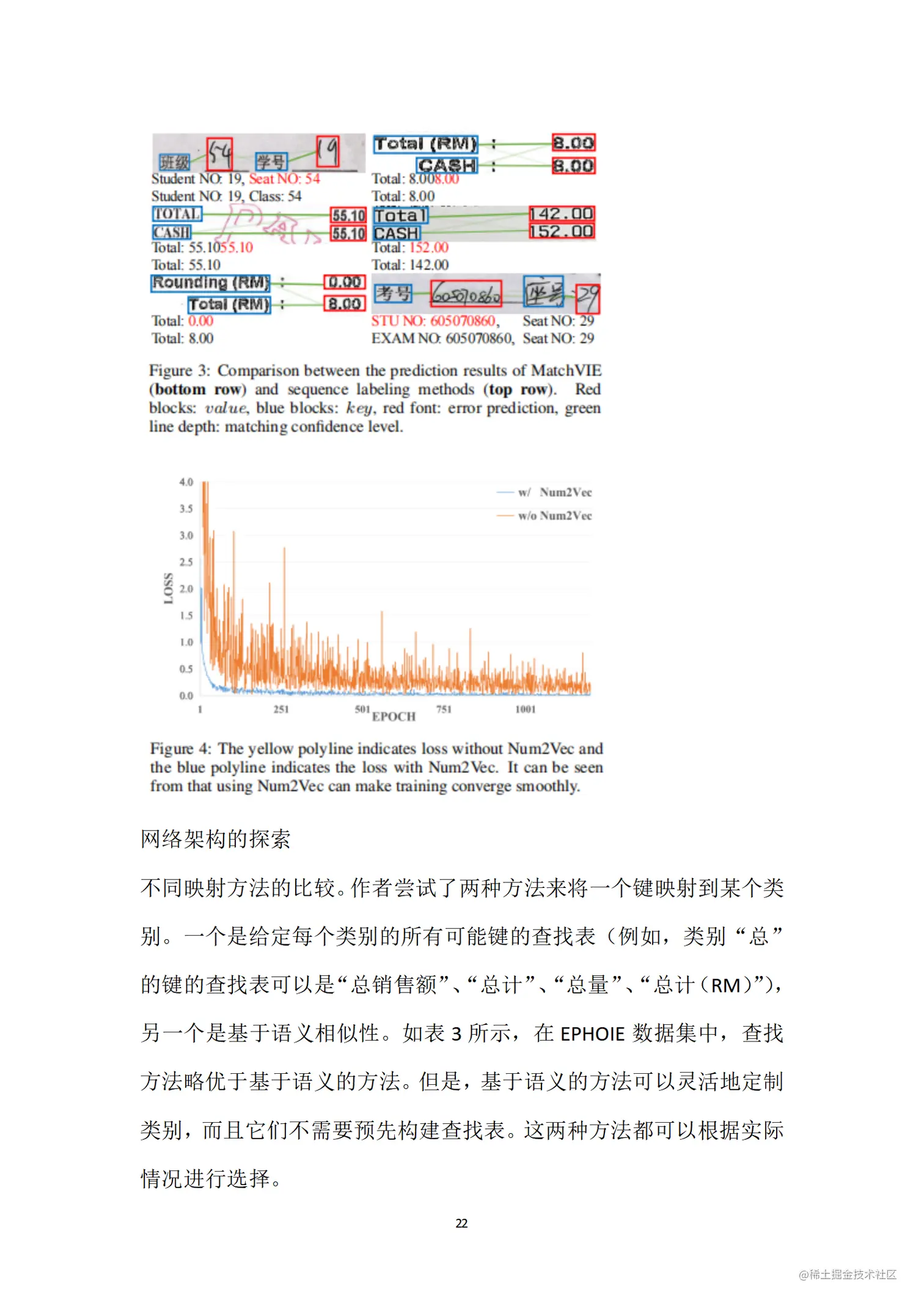 从文档中抽取关键信息已经被研究了几十年。在基于深度学习的方法出现之前,早期的工作主要依赖于已知模板中的一些规则或人为设计的特性,因此它们通常在没见过的模板上失败,在实际应用中不可适配。随着深度学习的发展,在信息抽取领域取得了重大进展。如上所述,大多数基于深度学习的方法将信息抽取定义为一个token分类问题。除了上述工作外,M. Carbonell还提出了一种基于CNN的方法,即从输入的文档图像中联合进行手写文本检测、转录和命名实体识别。除了这个范式之外,信息抽取也可以作为其他问题来表述。Majumder等人提出了一种利用先验知识提取关键领域值的方法。对于每个字段,首先选择一些候选词。然后,将每个字符的结构嵌入其上下文信息,计算该嵌入与目标域嵌入之间的余弦相似值作为相似度得分。