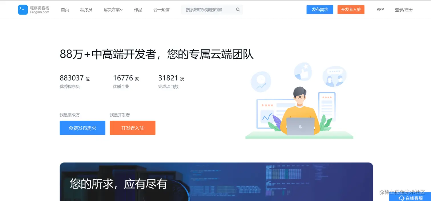 应该没有几个人不知道它的名字吧?程序员客栈是一个老牌的外包平台,由于平台的算法也是通过双向的推荐以让需求方or开发者匹配到合适的人/项目,所以对新手程序员也比较友好。