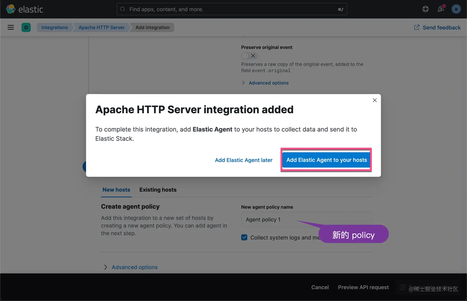 针对很多复制的集成,我们需要借助 Kibana 中集成的工具来帮我们配置 elastic-agent.yml 文件。