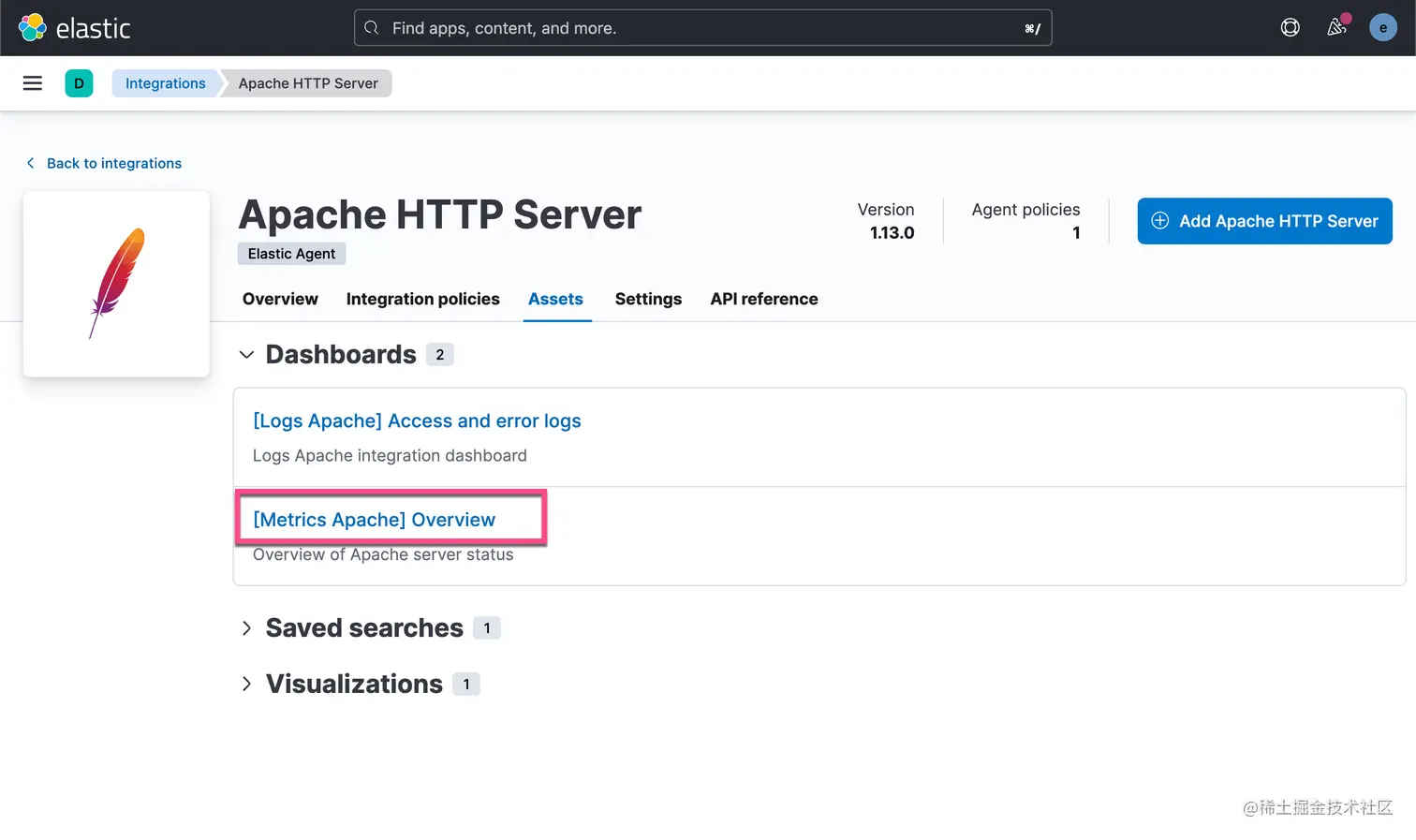 接下来我们来创建如何收集 Apache 服务器的 elastic-agent.yml 文件。