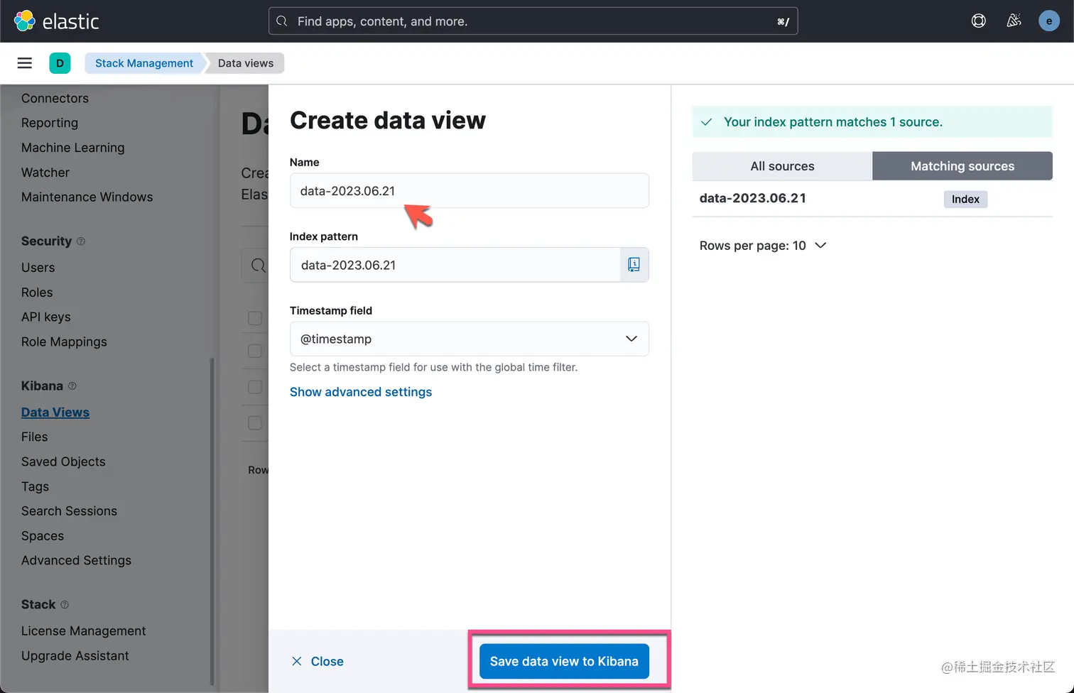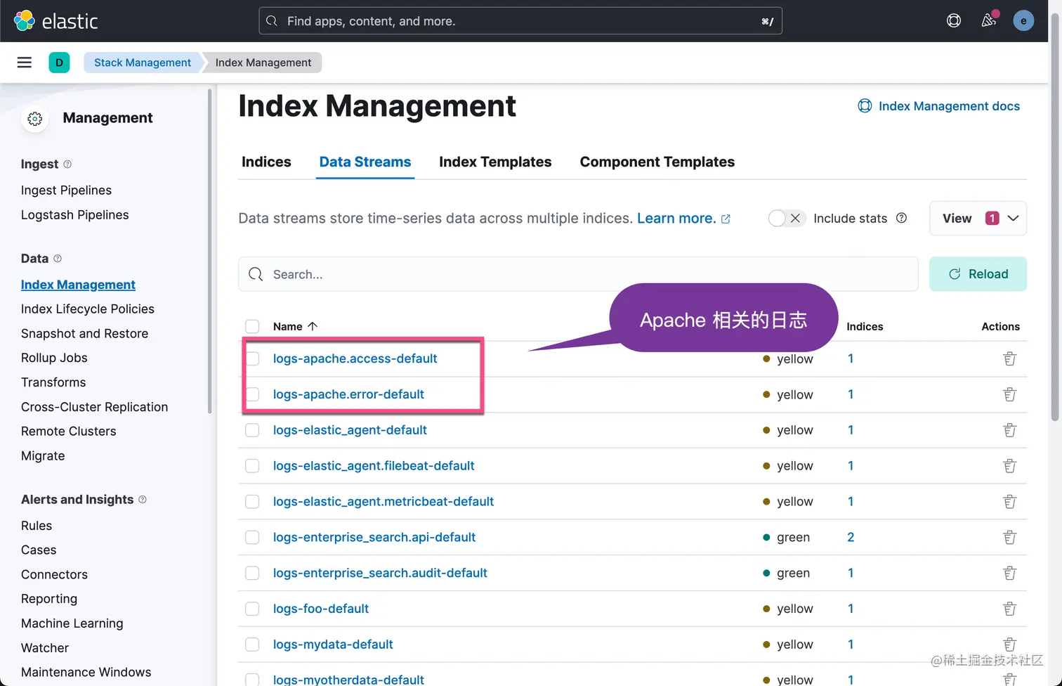我们可以回到 Stack Management 界面来进行查看: