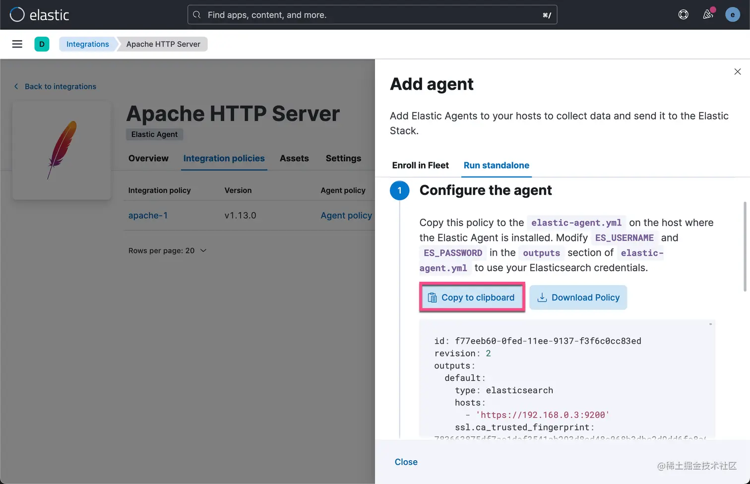 我们把上面的 elastic-agent.yml 内容拷贝下来。