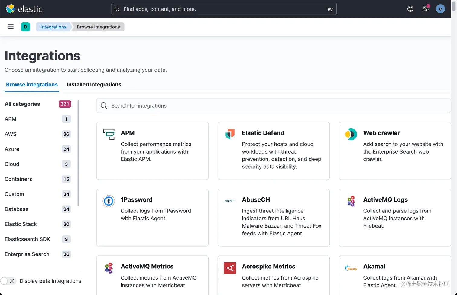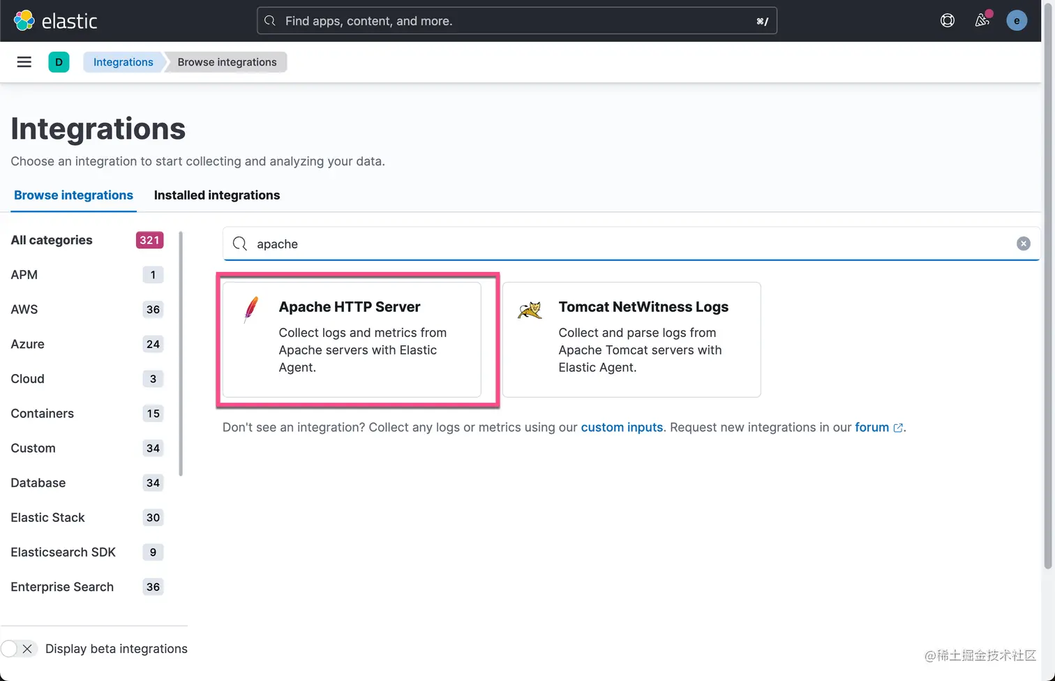 如上所示, Elastic 为我们提供了丰富的 integrations 来方便地采集数据,比如我们常见的 Nginx,Apache 等。作为例子,我们选择 Apache 服务器来做展示。按照如下的命令在 Ubuntu OS 上来进行安装: