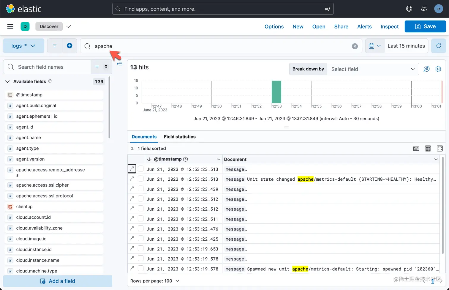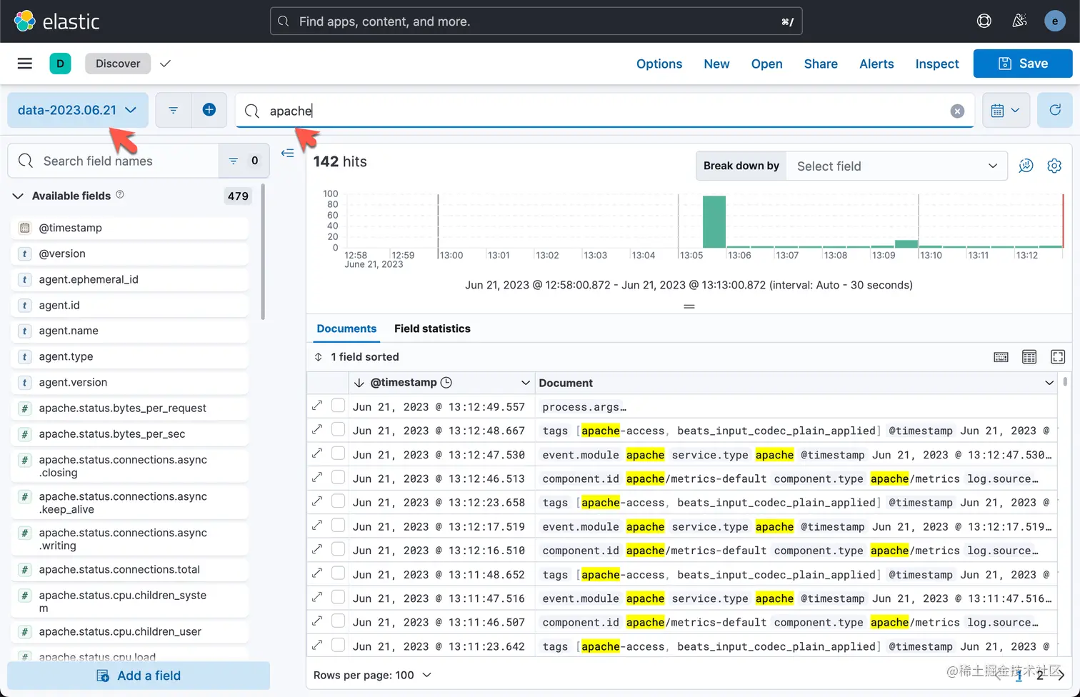我们可以通过 Discover 来进行查看: