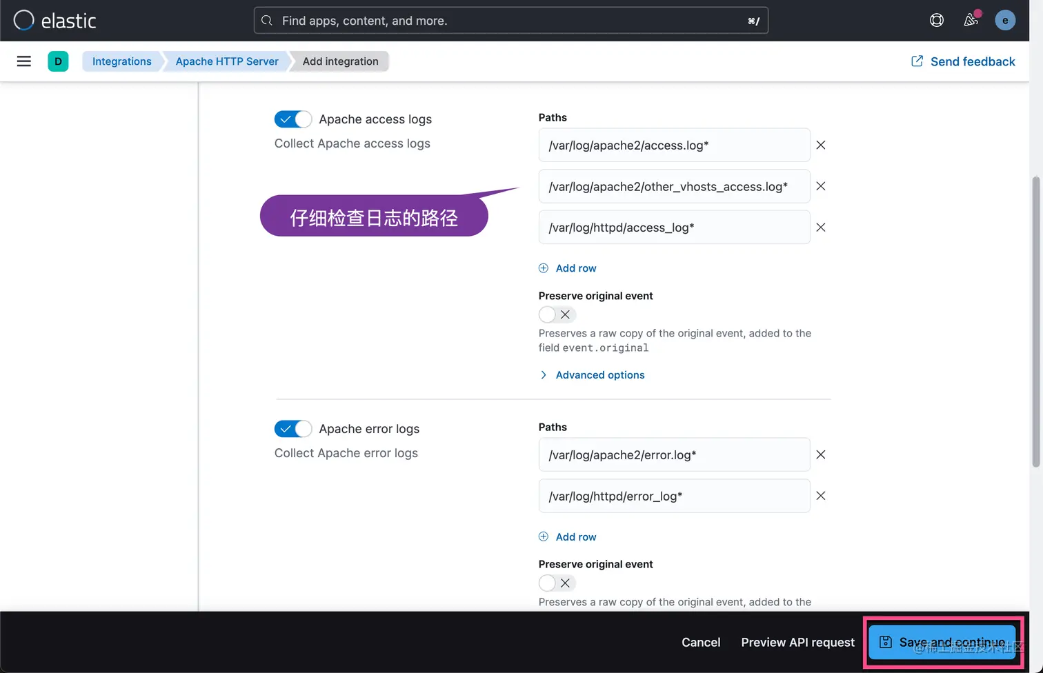 为了能够把 Apache 的日子数据通过 Logstash 写入,我们只需要修改 elastic-agent.yml 文件: