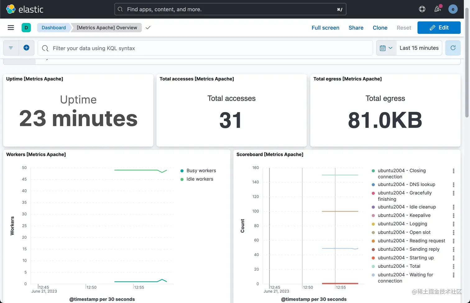 我在 macOS 下安装 Elasticsearch 及 Kibana,在 Ubuntu OS 下安装 Apache, Elastic Agent 及 Logstash。在本展示中,我将使用最新的 Elastic Stack 8.8.1 来进行展示。