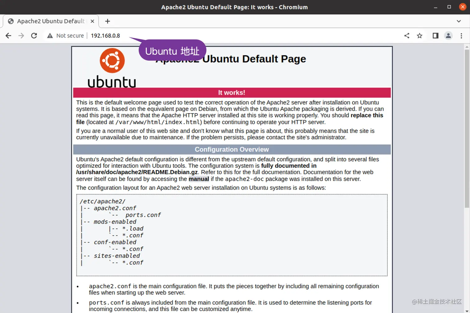 从上面的输出中,我们可以看到 Apache 服务器已经成功地运行起来了。