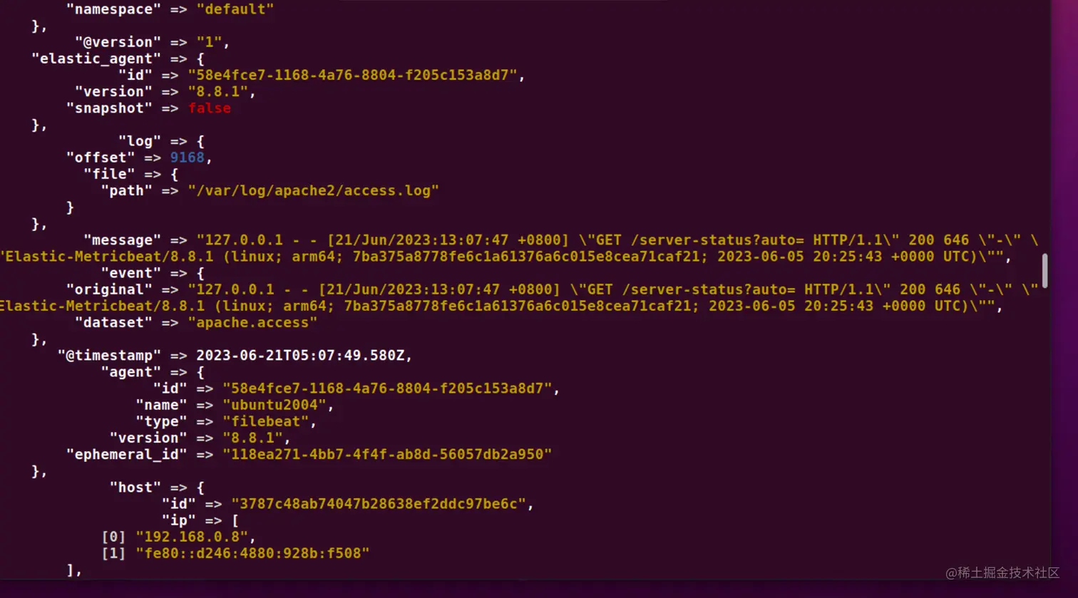 我们可以切换到 Logstash 运行的 terminal 中进行查看: