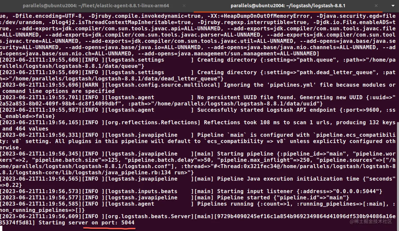 3. parallels@ubuntu2004:~/logstash/logstash-8.8.1$ ./bin/logstash -f logstash.conf