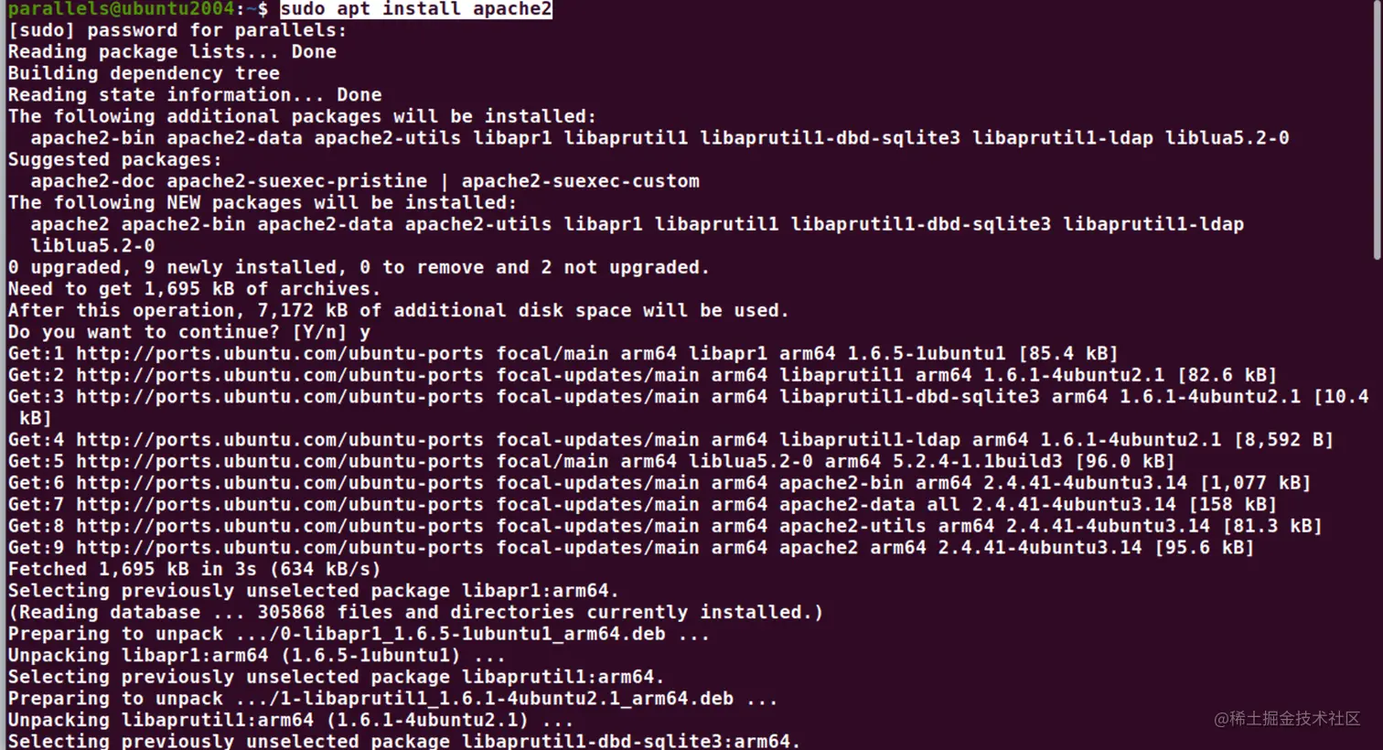 sudo apt install apache2