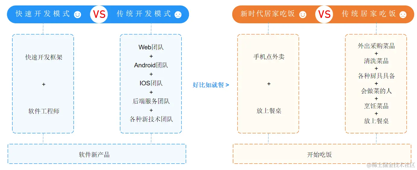 传统的开发模式它需要前后端程序员以及各平台系统的工程师互相配合才能完成这样一个工作,不过现在,一种新的快速开发模式颠覆了传统的开发方式。