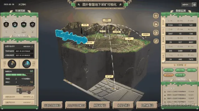 管理的主要内容包括采矿设备的维护和保养、矿山安全管理、环保管理和财务管理等。管理的好坏直接影响到地下采矿的效率和质量,运用更好得数字孪生可视化平台才能更加有效地查看矿区各个情况的发生,及时判断矿区发生问题和应对预案。